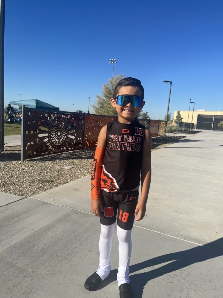 Bronson Kal-El Sanchez is a 1st grade student at Verrado Elementary School in Buckeye, Arizona and a member of the 2033 graduating class. He is an avid flag football player, currently playing for the West Valley Panthers, a 7-8 year old club team. The team competes in monthly tournaments in Arizona, playing two to three games a week.