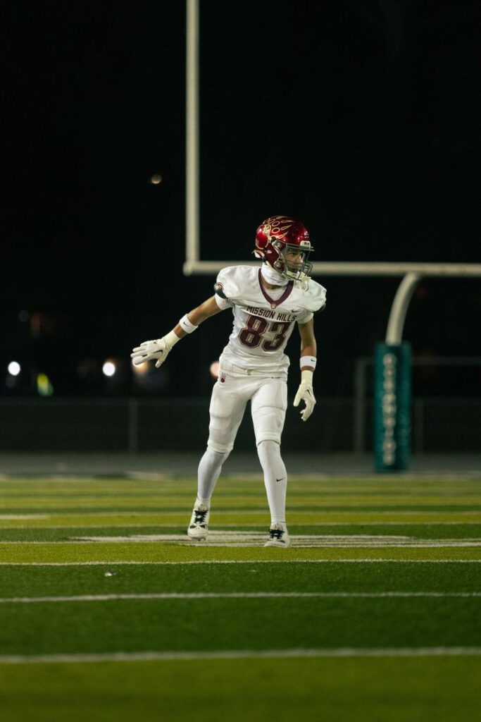 Anthony Stalzer, a member of the class of 2027 at Mission Hills High School in San Marcos, has been dedicated to football for eight years. His love for the game blossomed from watching NFL games with his family, sparking a desire to be on the field making big plays like the professionals he admired. Football has not only been a sport for Anthony but also a way to connect with teammates, showcase his skills, and experience the rewards of hard work. He finds joy in running precise routes, making impressive catches, and seeing his efforts translate into success on the field.